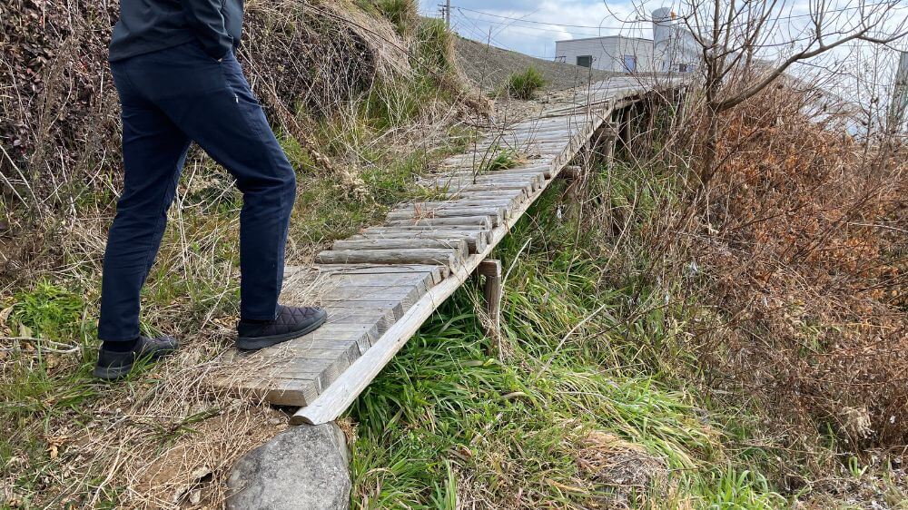 1段目から降りる階段はなく、2段目に行くには一旦道路に出るつくり。