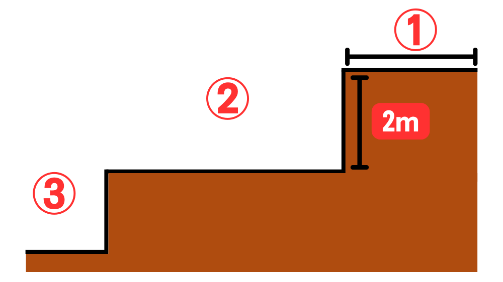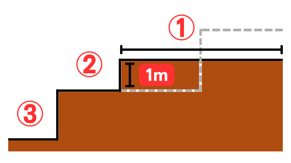 すると、擁壁部分は半分になり、1段目の敷地はもっと広がります。