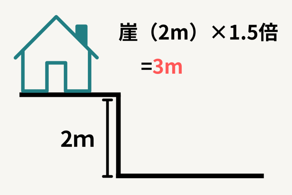 多くの自治体では、崖の高さ×1.5~2倍とされています。